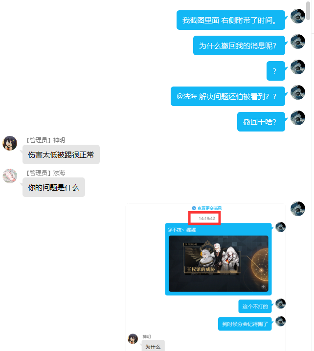 发出来除了单纯对他们态度感到不爽,也有让大家避雷好好注意这类管理,也建议官方在活动期间禁止踢人收人,这属于对玩家的保护,也能促进管理者对方法的改进。
