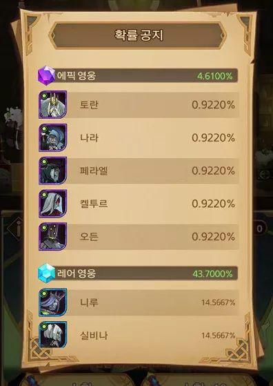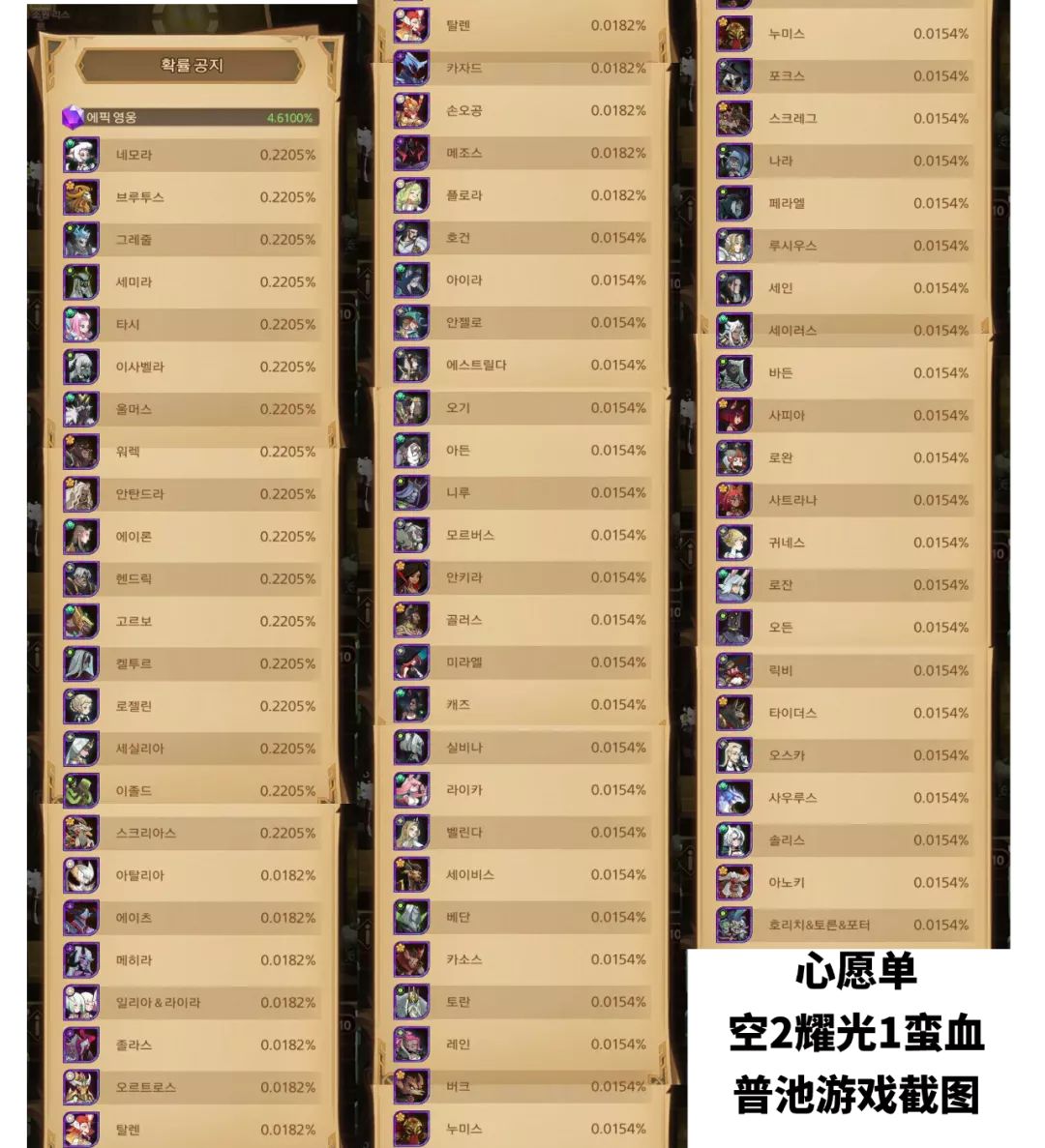 以当心清单放满的时候,对于普抽精英英雄机率总共是4.61%