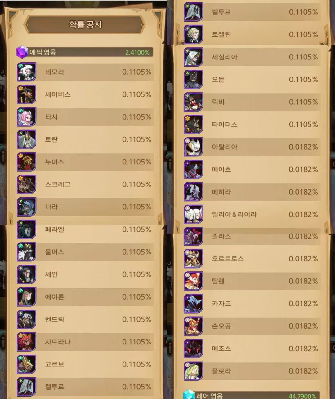 每一只心颐清单的英雄个别机率是0.2205%(4.41%/20)