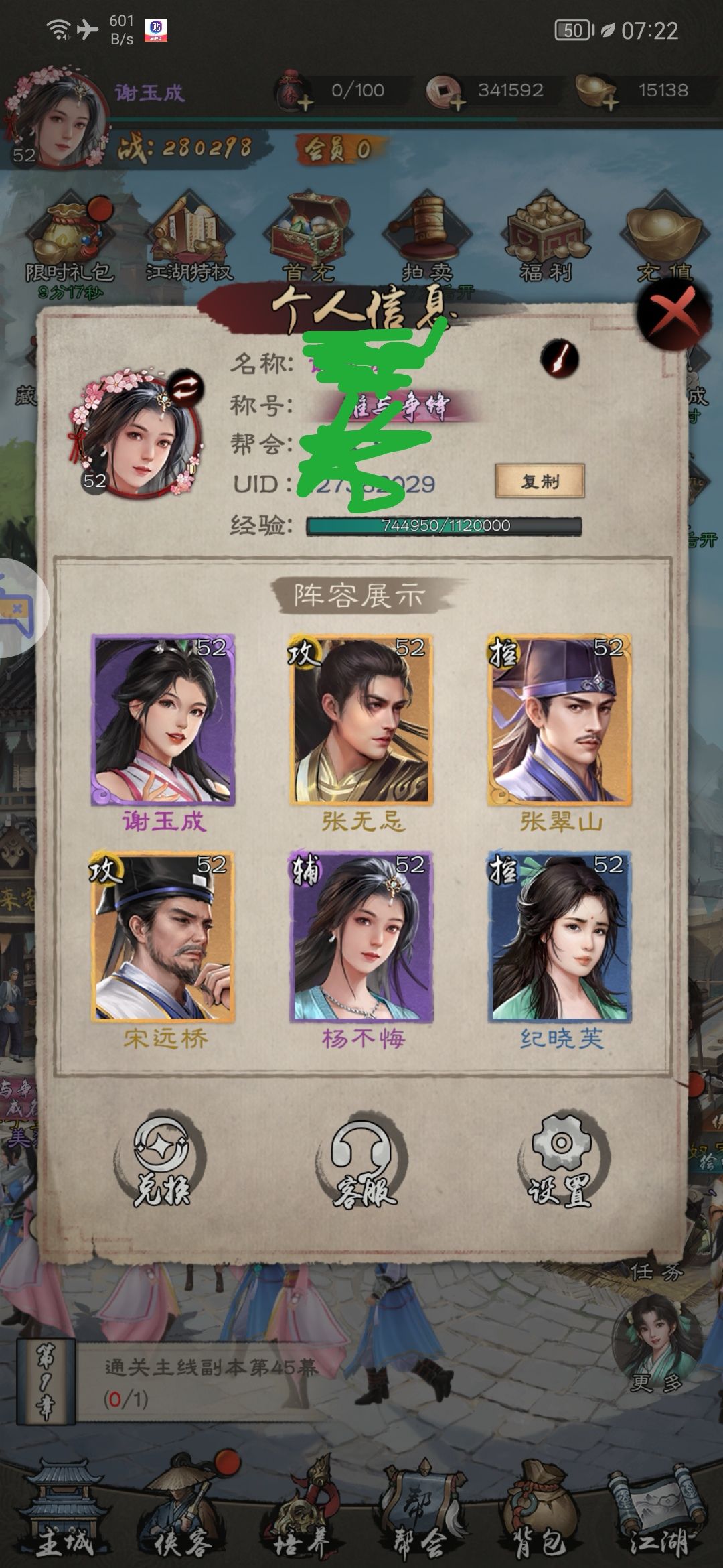 1,开局第一天跟着主线走能到36 37级左右,侠客信物全部留着不要招募,零氪应该有200个差不多,(划重点一次都不要碰招募)