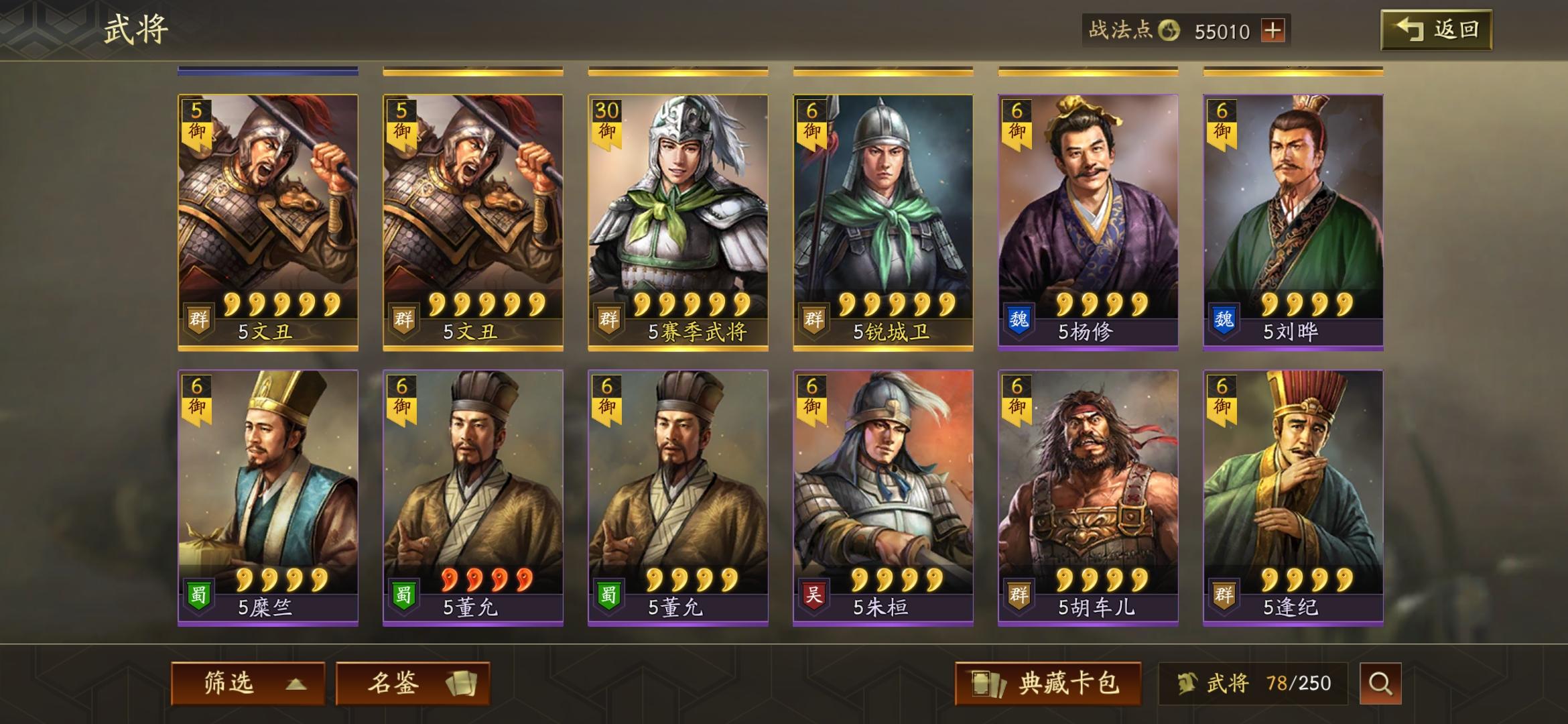 一两年没玩了,最近回归了,有没有懂的兄弟帮我配配武将
