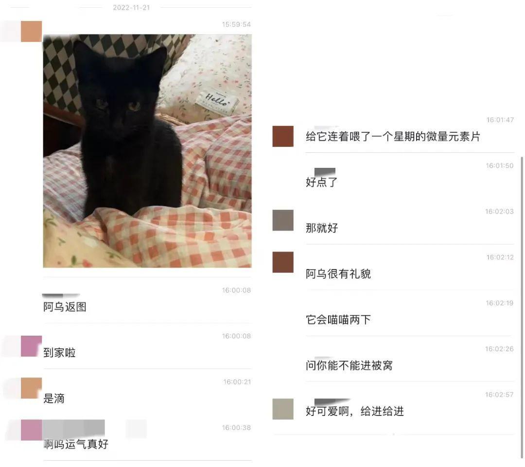 而就在11月14日,菌菌也收到了网易流浪猫救助组织的信息,说阿乌已经被好心人领养并带去附近医院检查身体。