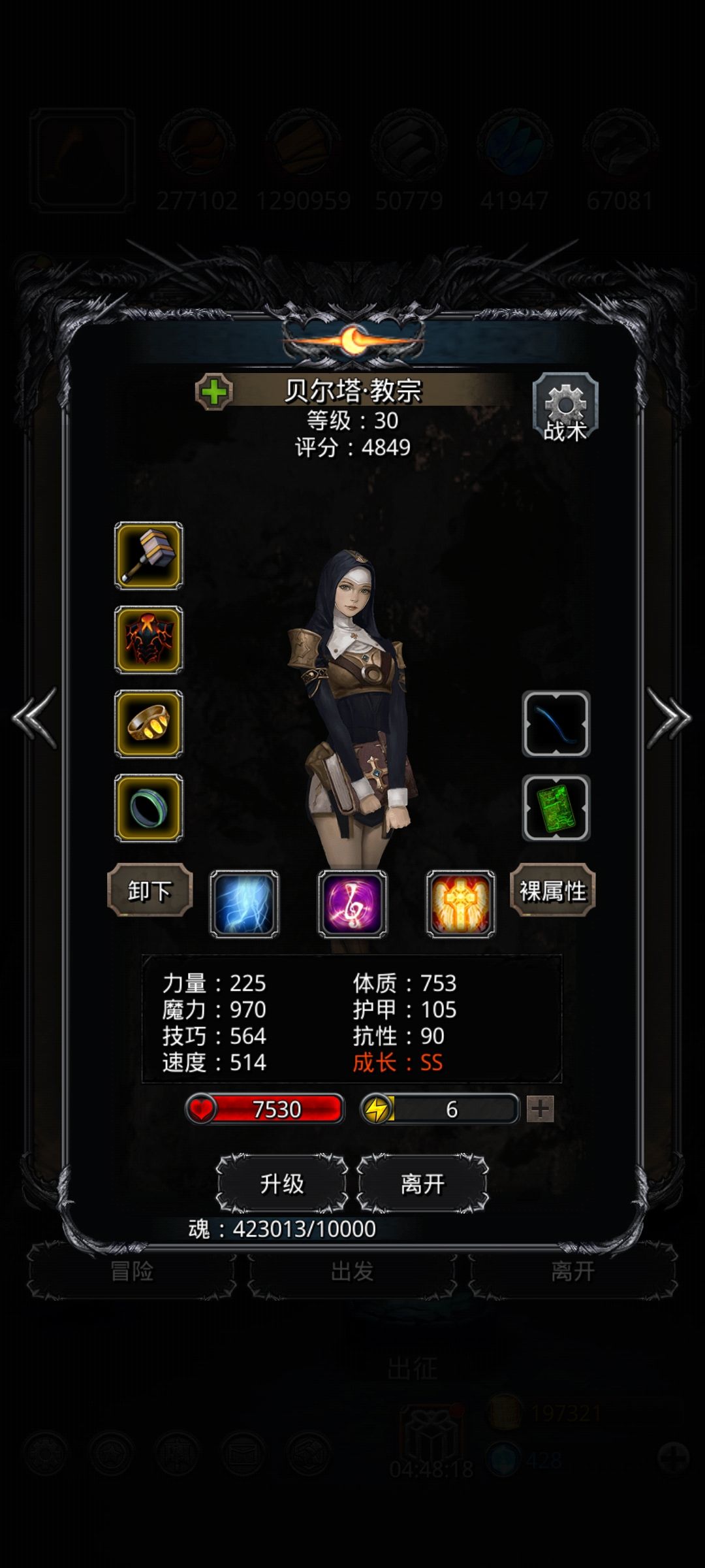 狂战:带先发(可不带),只开乾坤一掷,泰坦防眩晕,堆命中,带14图力斧