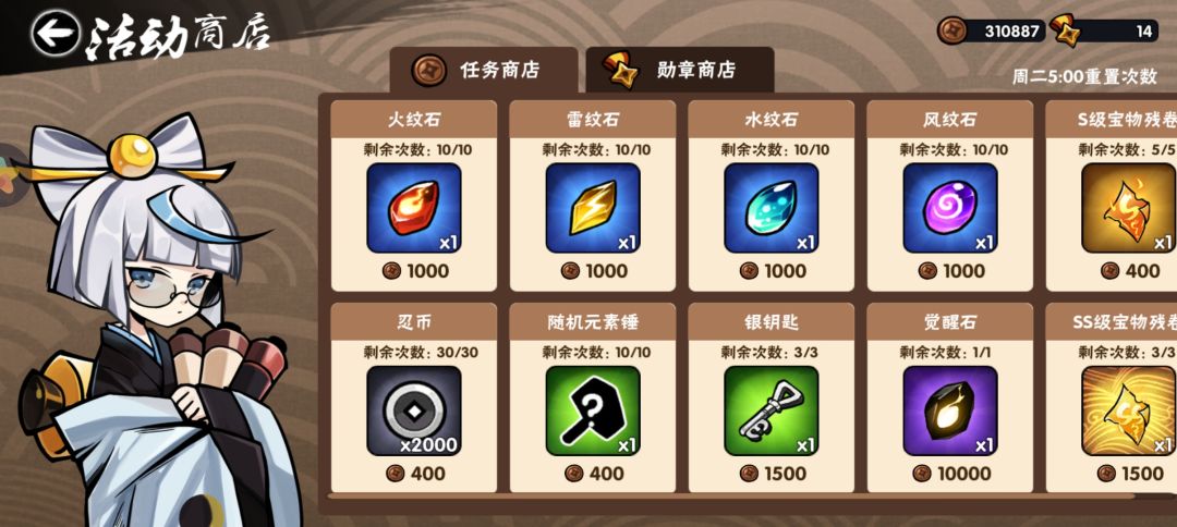不知不觉30w了,这任务商店的东西似乎都用不上啊,感觉每周任务都是为了勋章换金钥匙打的