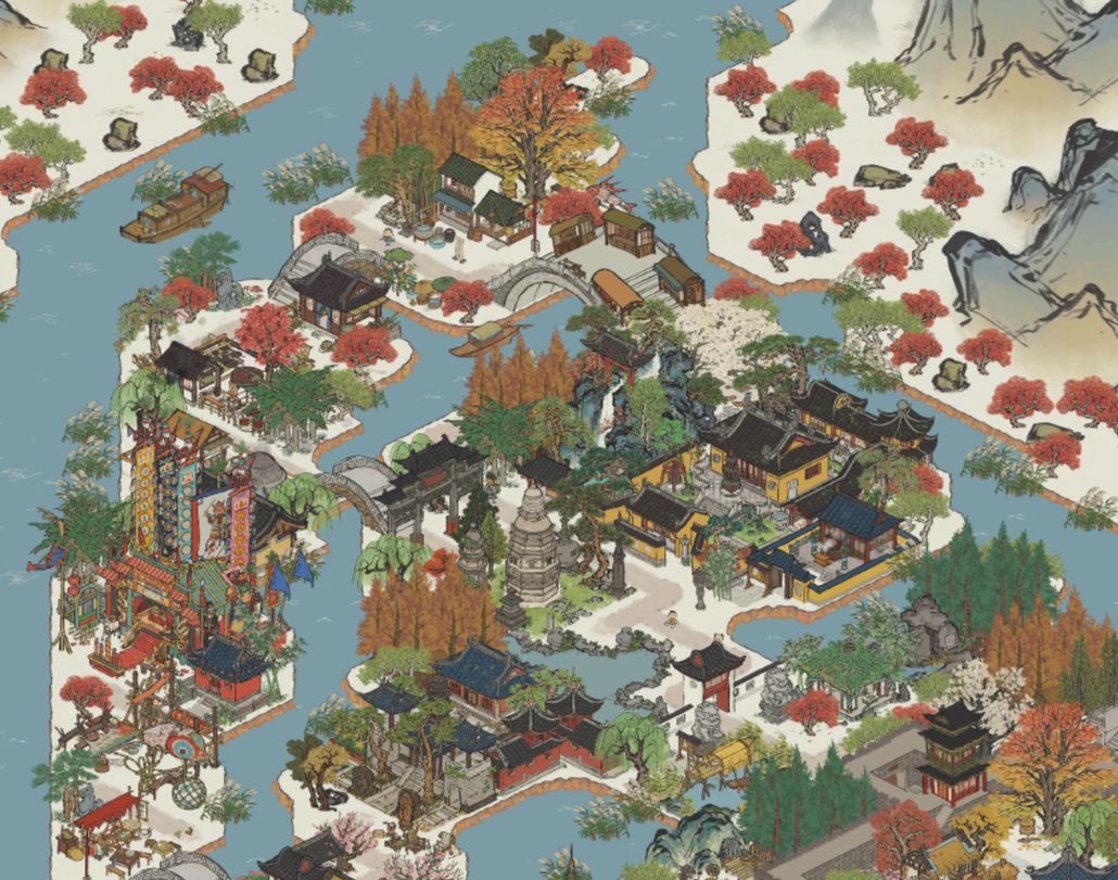 基本原创,思路跟着地名介绍走。借鉴了文鳐鱼的萃芸庭(80%),辣个阿棠的寒山寺(70%),B站misaki兔的东园(30%)。