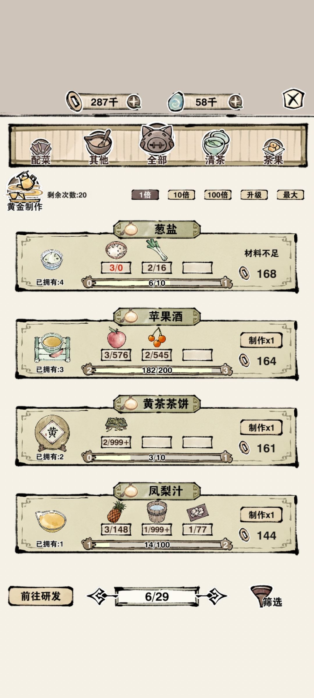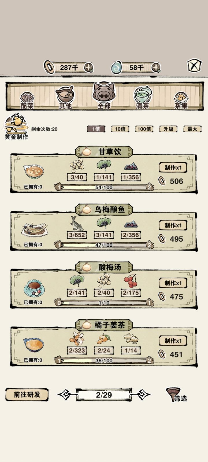 在商店可以买到全部材料的食方价格排序,有几个价格低于100没有记录(大概是全的只差一些成就食方还没拿到)