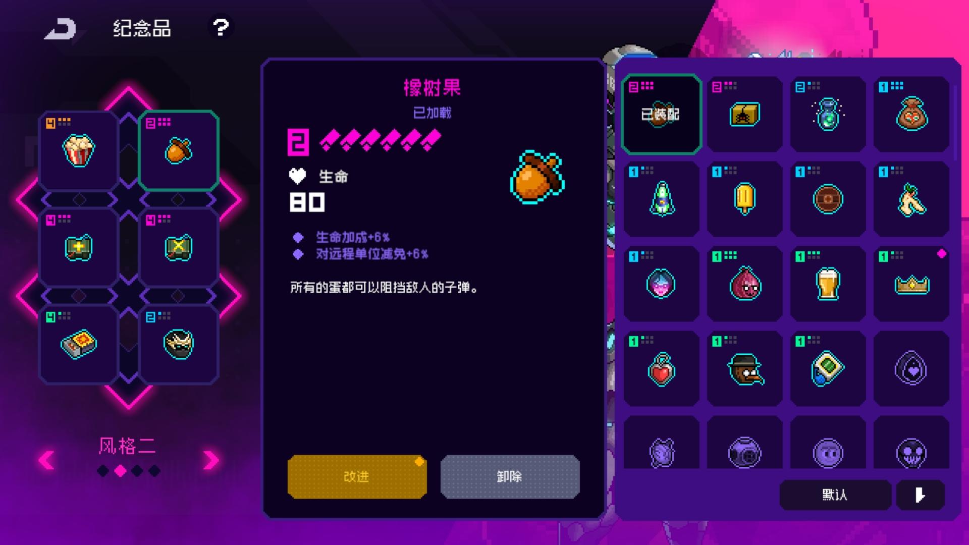 配合,理念,由于爆炸能炸到自己,我要很注意自己的位置,那移动就是必不可少的所以我选择这个(当然有飞选飞),但是还需要规避伤害,所以我选橡木果,用蛋来挡伤害(我不想带火柴盒的,为了凑爆炸套),然后找位置输出,如果你觉得鸡肋