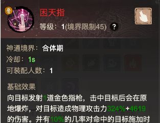 普攻分别有物理伤害和法术伤害两大类型。物伤代表神通:困天指