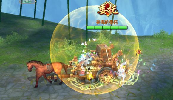 ⑦镖车受到攻击后,将会停止移动,被劫镖后,无论成功与否,镖车上都会生成一个60s的保护罩,因为你永远不知道,下一秒,劫镖方会从哪里出来,所以若镖车有一定的破损,及时使用【修理】技能修复已破损的镖车。
