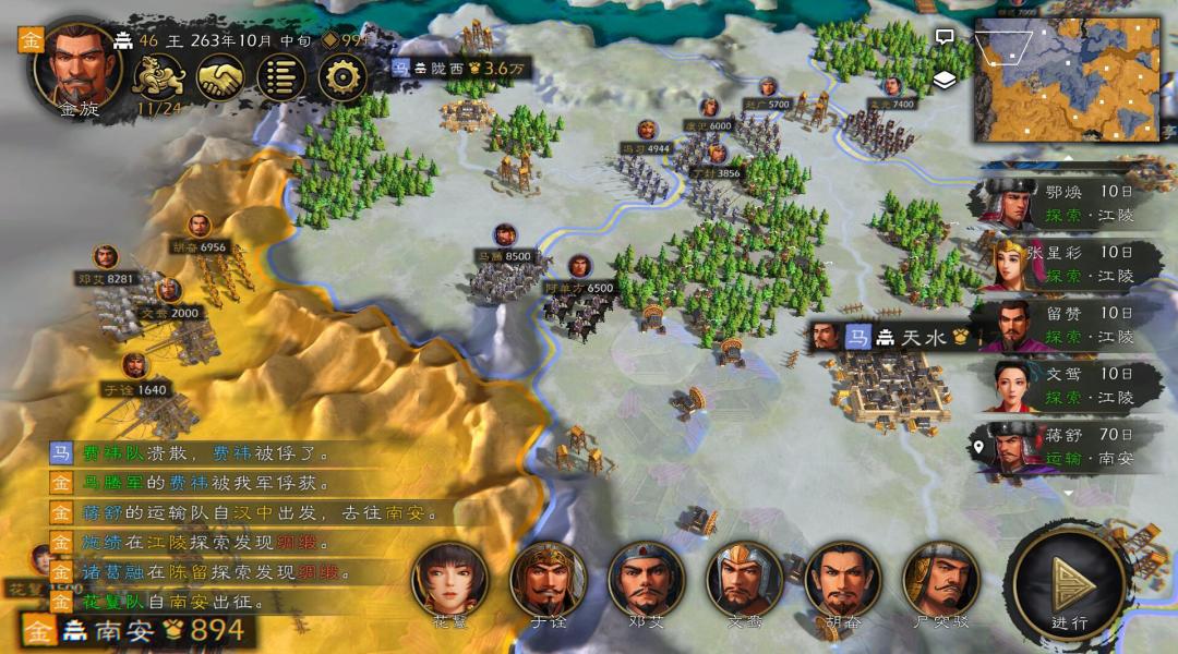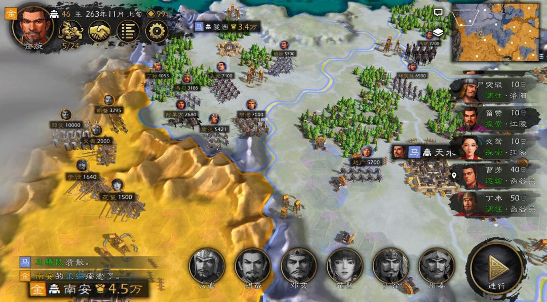 当我打到南安城之后,再北上攻打马腾,遭到了马腾的反击,于是我利用关隘有效的杀伤了马腾大量的有生力量,消耗了他大量的军队,甚至俘虏了他许多武将。此消彼长之下,马腾已经被我折腾的国力大损,只能任我侵掠了。