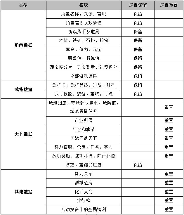 第二赛季数据保留和重置说明: