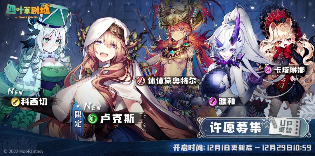 许愿角色:卢克斯【限定】、科西切【new】、休休黛奥特尔、雅和、卡塔琳娜