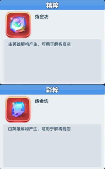(1)英雄解构后可获得对应的“精粹”或“彩粹”(S+英雄获得精粹,S英雄获得彩粹)