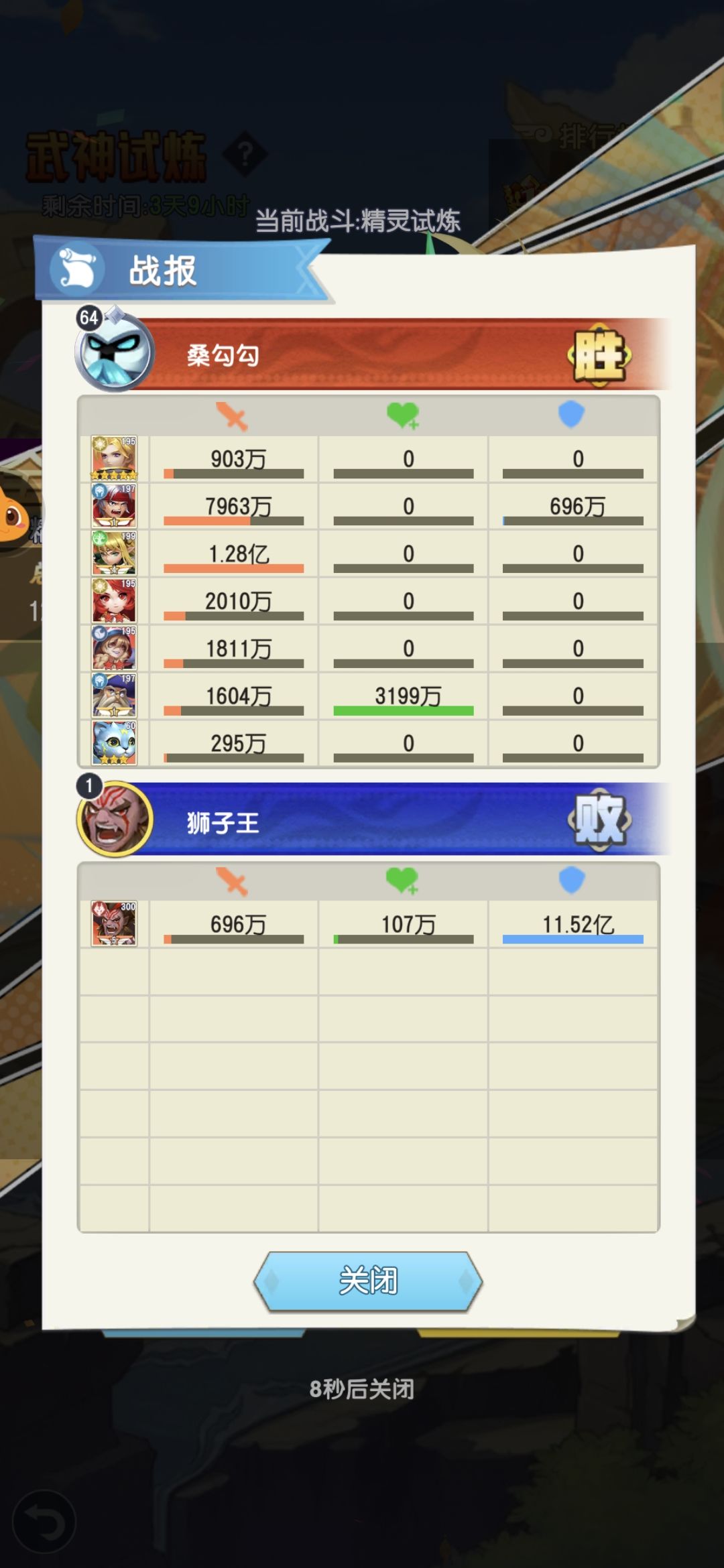 输出:武极、精灵王子或狮心王,武极百分比伤害,打武神试有奇效;