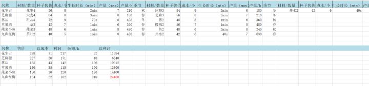 以及这里不考虑黄金制作的情况,和种植时田地,伙计的加成