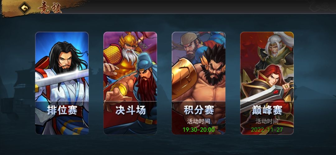 竞技版块无疑是游戏内PVP比重最大,竞技体验感最强,元宝奖励最为丰厚的版块,它包括:排位赛、决斗场、积分赛、巅峰赛、军团争霸赛和极限竞技赛。