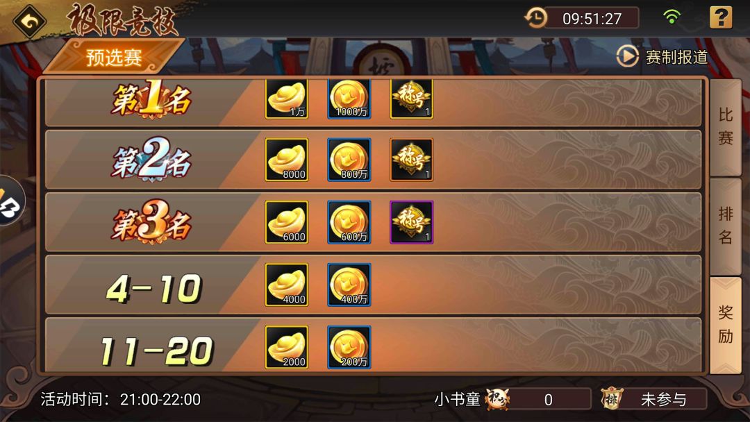 每晚开赛的积分赛,可以获得金币、战魂、战魂经验、升星石,其中升星石作为装备升星的重要资源,也是和单骑闯关一道,升星石唯二的免费产出途径。