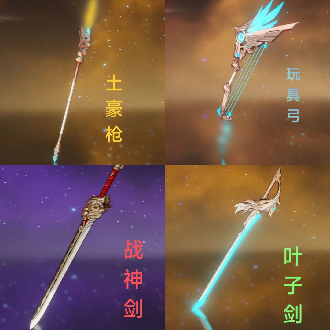 武器卡牌分为共分为,有玩具弓、土豪枪、战神剑、叶子剑