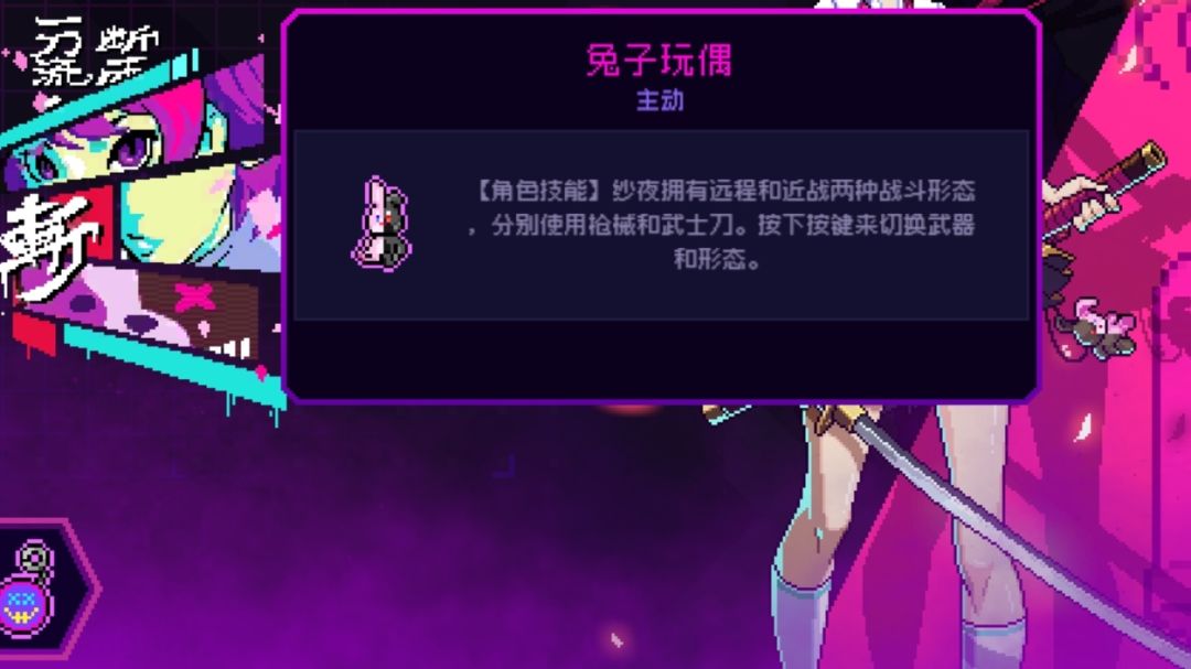 主动技能有:兔子玩偶(刀和枪的双形态切换)