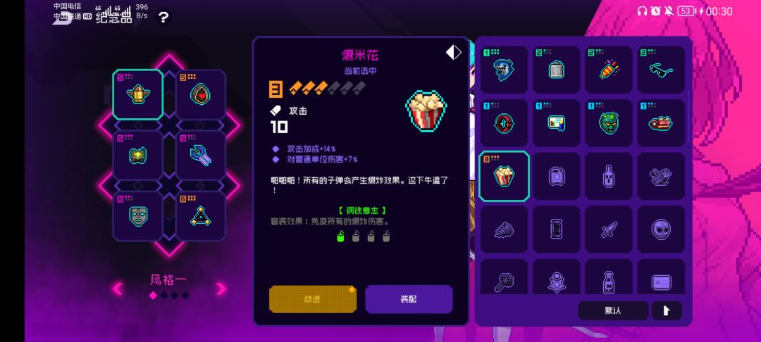 (爆米花,对普通单位伤害加成14%。另外爆米花可以节省炸弹。玩纱夜一般用自带刀攻击,拿到近战武器才可能选择换武器。而自带刀不触发爆炸,用灵魂行者是最后一段触发爆炸,地牢里用拳头电锯啥的带爆米花建议留到boss房。而且因为你是有可能在地牢里面筹齐爆炸套装效果或者舔到“老大哥”的,所以对于纱夜这种可以换刀近战的角色来说用爆米花触发炸弹自杀的负面效果是可以去做一个规避)。而爆米花主要是考虑馋对普通单位伤害的加成和白嫖炸弹,当然打末日时爆米花则完全不用考虑