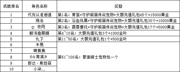《世界ol》7月新区活动名单
