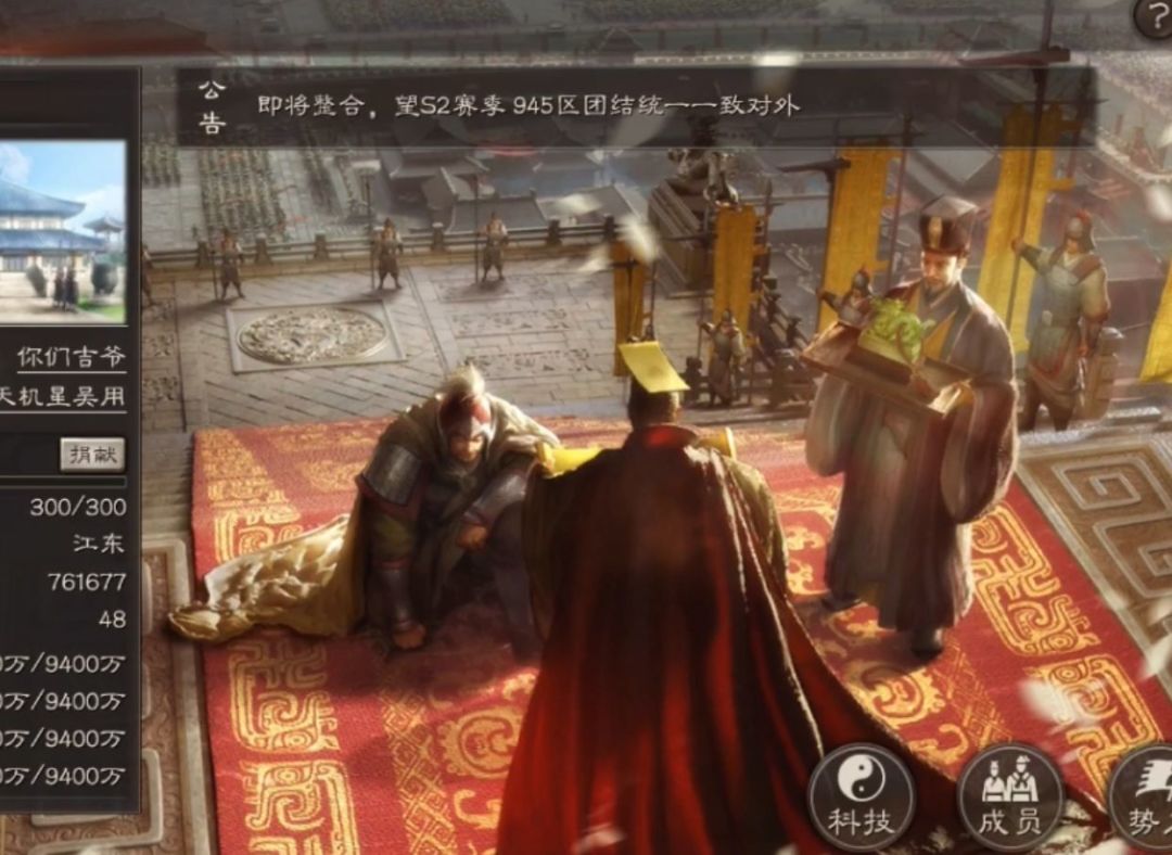 内部有了变革,外交上的战略自然也做出了相应调整。【霸霸盟】一改此前的孤军奋战,决定联合西凉、巴蜀、荆楚共同制衡山东。盟主吉爷和成员晓炎主动向其他同盟分析利害关系,表示愿意与他们合纵连横以制强敌。原先想独自作战的同盟渐渐被【霸霸盟】真诚的态度打动,最终同意结盟。几大同盟联合顺势而下,一时间势不可挡,胜利的天平此时已悄然偏向他们。