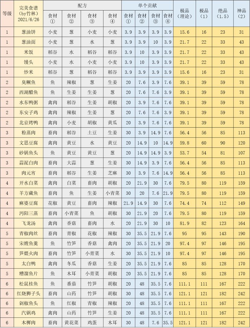 食谱:按等级(仅极品)