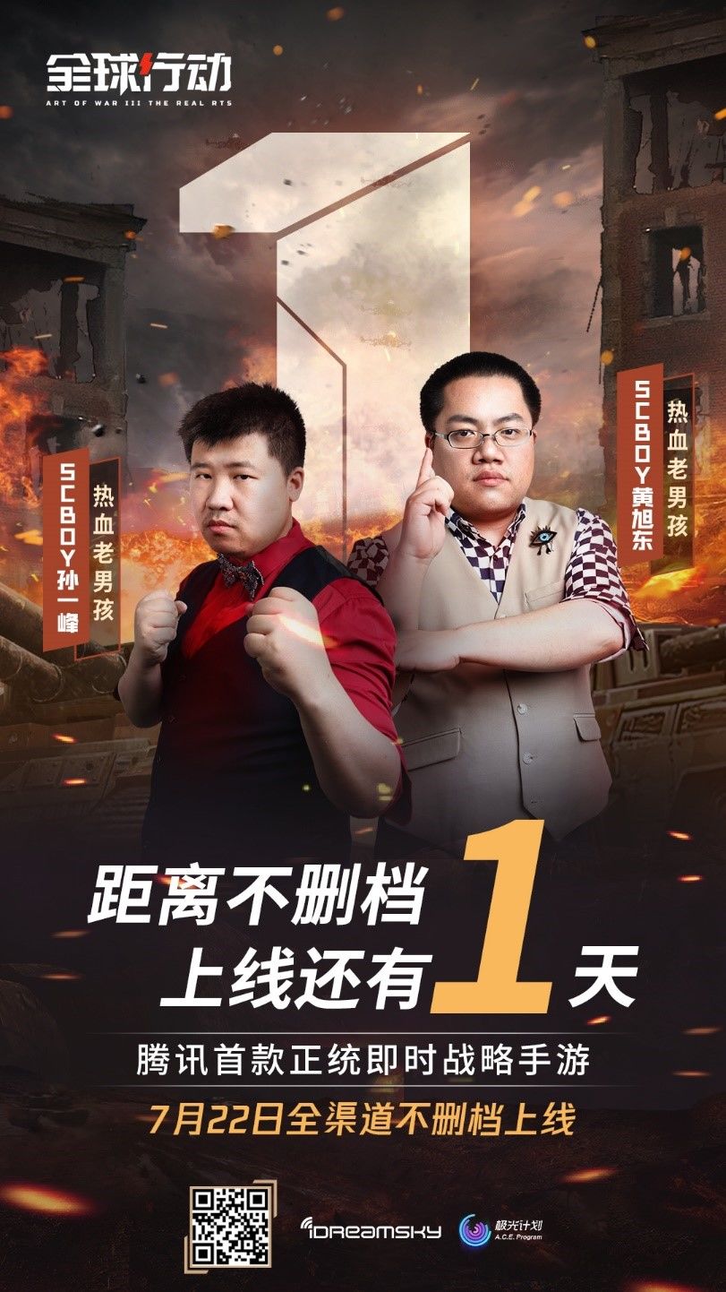 《全球行动》即将在7月22日不删档正式上线,值此倒计时一日之际,我们荣幸地宣布,RTS圈层超具影响力的SCBOY:黄旭东、孙一峰将以热血老男孩的身份成为《全球行动》手游的特邀嘉宾。