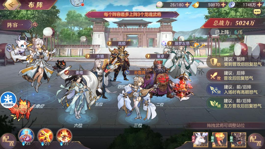 魂左慈(羁绊华佗),专武董卓,孙鲁育,专武高顺(于禁),水镜,姜维