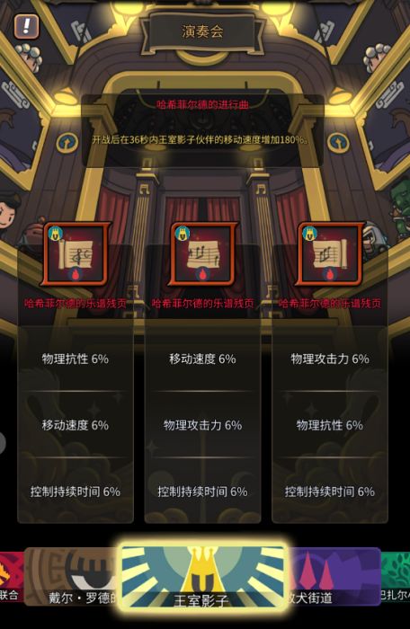 例如:选择王室影子放入对应的乐谱残页,会触发套装效果,在伙伴页可查看是否触发套装效果。