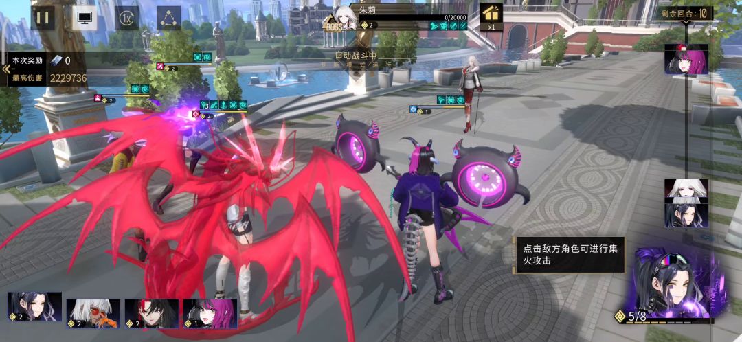 以自身为例:开局由于有弦大招加持巨灵免费灵解后放得意技过第一回合,三速位夜骑士免费灵解后放得意技全体夹击敌方目标。