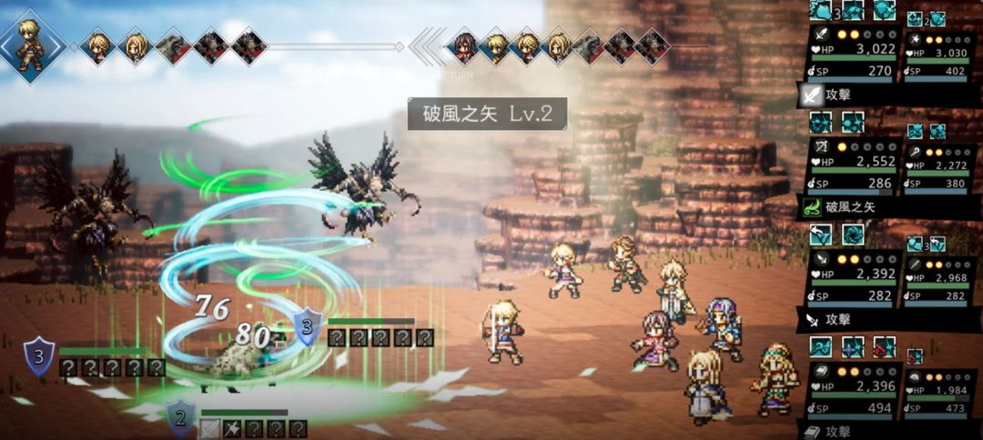 游戏由西木康智担当战斗音乐,使用光影绝佳的高清HD-2D像素美术风格。你可以选择从“财富”、“权力”或“名声”主线开始,培养剑士、舞者、商人、学者、药师、盗贼、猎人、神官8大职业,利用BP、Break战斗机制以及影响剧情的“影响力”机制,由8名角色组队,展开一场关于名、权、财的王道冒险。