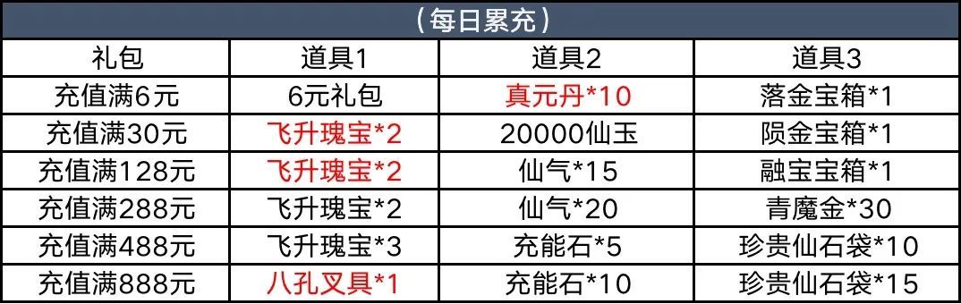 【活动简介】活动期间,每日累计充值达到指定金额即可领取相应好礼。