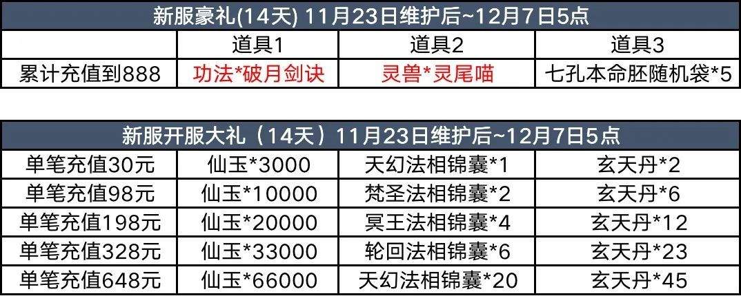 3、2000充值豪礼:活动期间内如不需要道具3:可联系客服兑换灰太狼、哮天犬、猩红魔蛛、化龙诀、兽神诀、鲲鹏、鸾鸟、驳、血神诀、上古丹书、太阴鬼典、八孔双异能胚子其中1个。