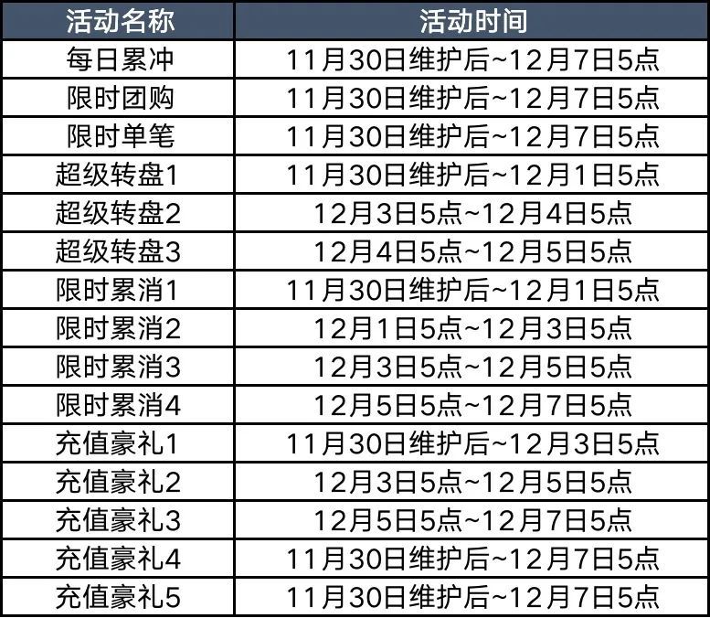 【活动时间】11月30日维护后~12月1日5点