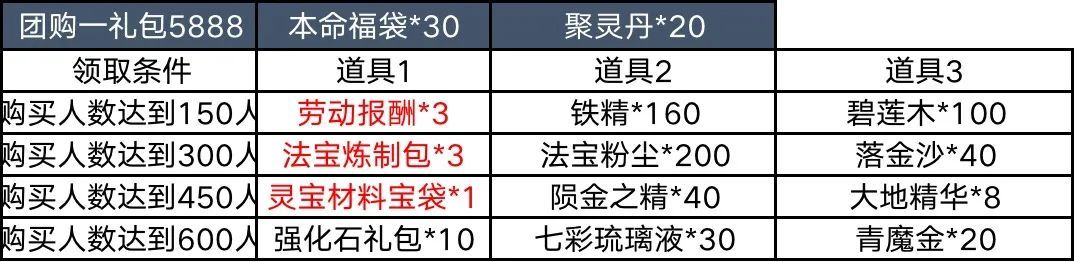 【活动简介】活动期间内,道友们可购买活动界面的团购商品。当购买团购商品的人数达到一定数量时,购买过该商品的道友们可以额外领取相应奖励。
