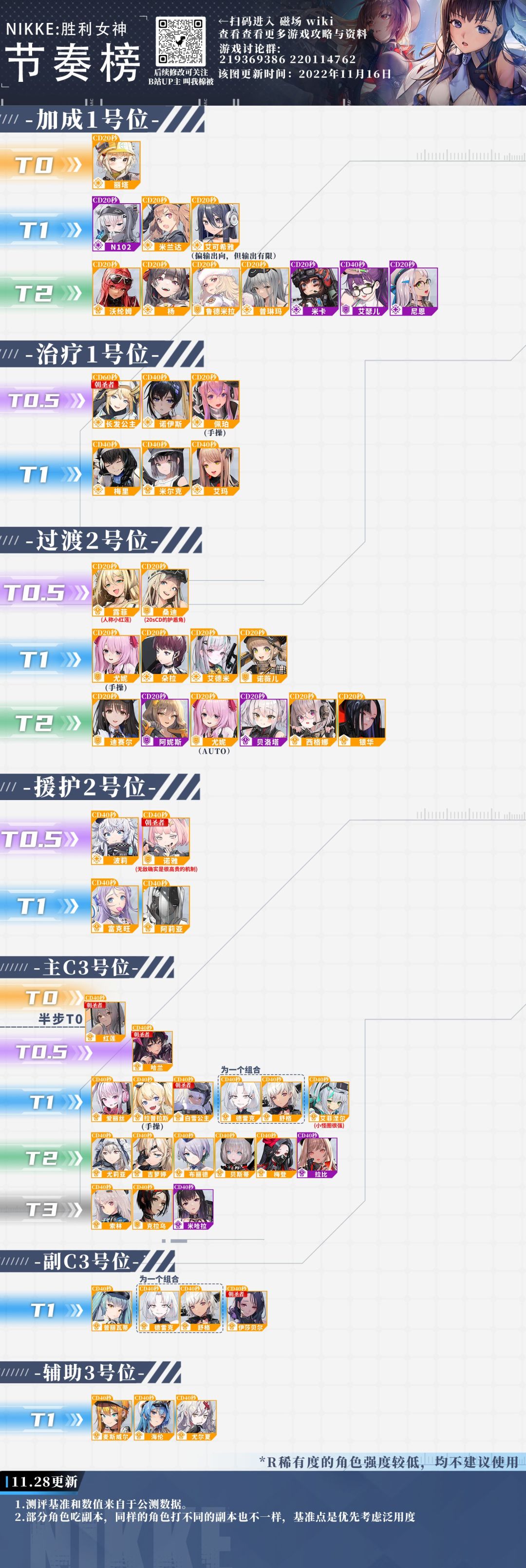 本次更新将会细化分位。我(原作者)把所有妮姬分成7种位置。分类的具体描述以及分类标准如下。