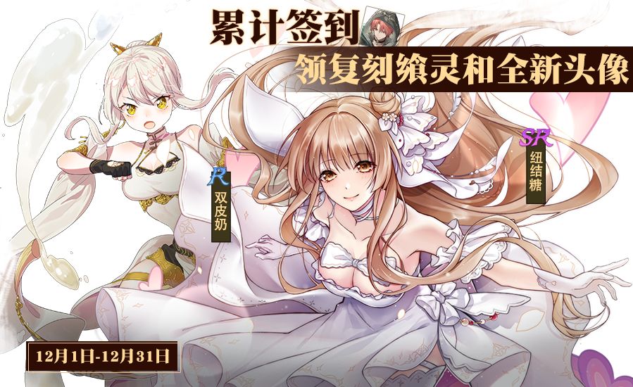 活动描述:活动期间, 御侍大人每天登录游戏即可领取大量珍稀道具,累计登录达到一定天数还可领取复刻飨灵和全新头像等一系列奖励。具体内容为累签三天领取R飨灵-双皮奶,累签七天领取SR飨灵-纽结糖,累签十四天领取R飨灵-约克郡布丁,累签二十一天领取全新头像。
