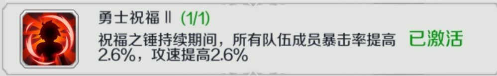 当这些效果被放大25倍,用勇士祝福来说例,就是基本上可以理解为,当进入活动地图挑战时,释放奶锤必定使英雄技能暴击。