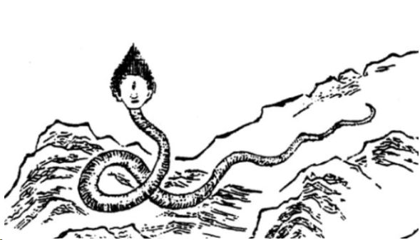 烛阴其为物,人面,蛇身,赤色,居钟山下。(直译:他住在钟山脚下,长着人的脸和蛇的身子,全身红色,身子有一千里那么长。)