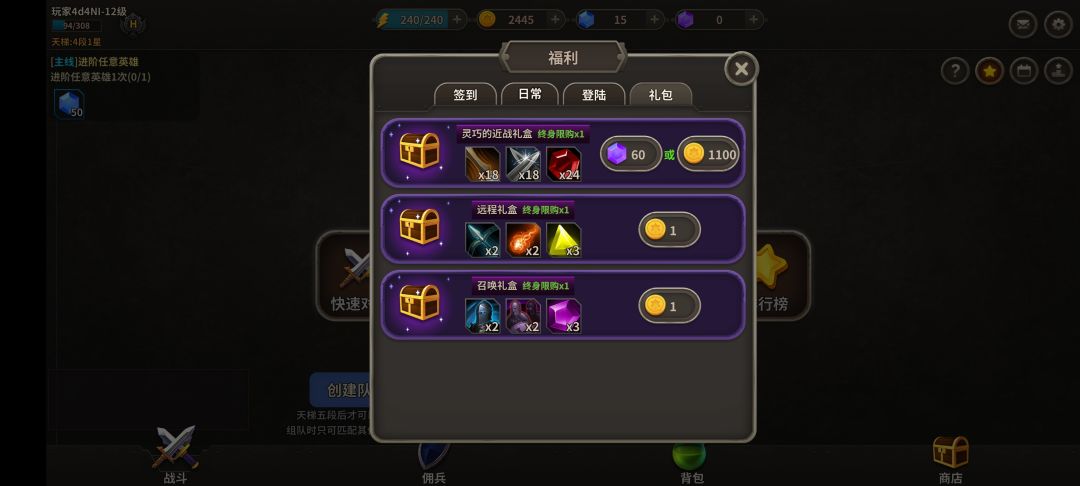 6、福利界面中添加更多的累积登录与礼包的奖励