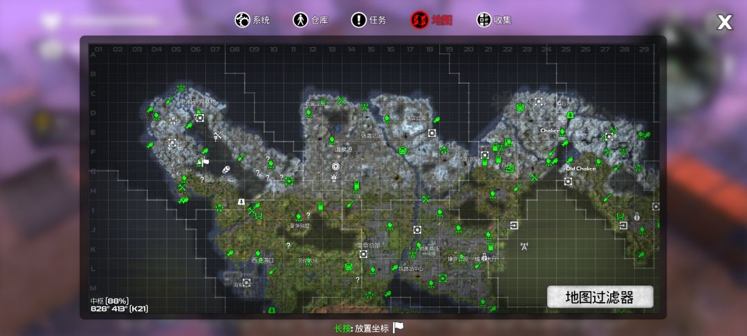 4.很多地点标志在菜单右边的收集栏,有各个标符号的坐标,可以自行查看。