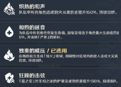 解析:为加伤buff,对于火元素输出队十分试用,是高难度挑战比较推荐的buff