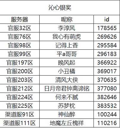 沁心银奖(若干):勾玉*1888+召唤卷轴*20;