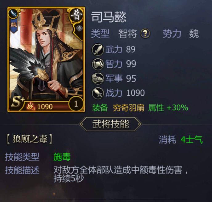 排兵布阵决胜千里的智将。谋略越高 伤害越高,能造成持续伤害技能(例如施毒、火计)