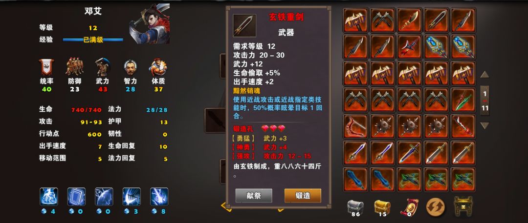 玄铁重剑:武力+12,出手速度+2