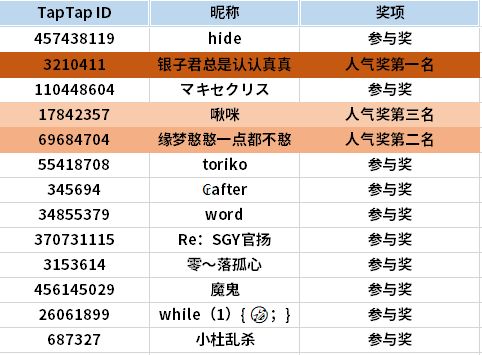 · 活动奖项可以累积获得,即玩家可以同时获得人气奖和参与奖。