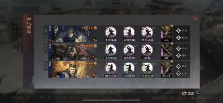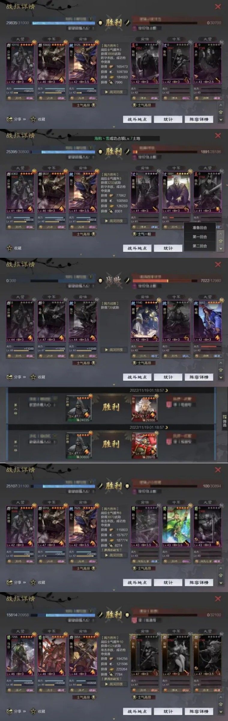 可以看到,这个队伍作为五队,依旧有强力的表现,在面对前三队时也并不乏力,到45级之后战斗力会更强。当前版本主城我认为最为合适的五队就是这样搭配了,合理利用了所有体系,物理刀省出的河内众谋完全可以五队使用,如果没有曹操或者不红,五队也可以选择双减魏智,后面给大家出一些其他可以选择的队伍。希望可以给大家一些帮助~