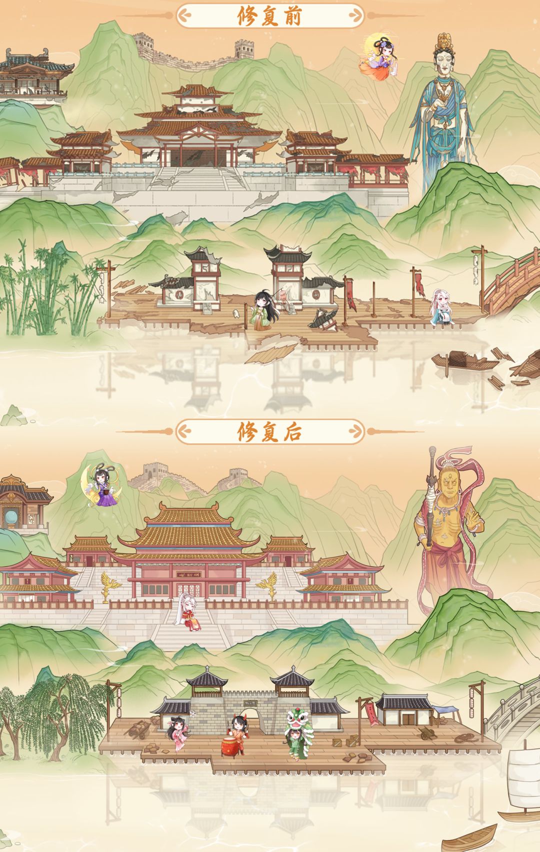 简单说下游戏本身,这是款节奏相对佛系的模拟养成游戏,在这里你将可以召唤出许多可爱有趣的节日神灵并加以养成,借助他们的能力合理消除邪祟,然后绘制出一个全新的人间景象......