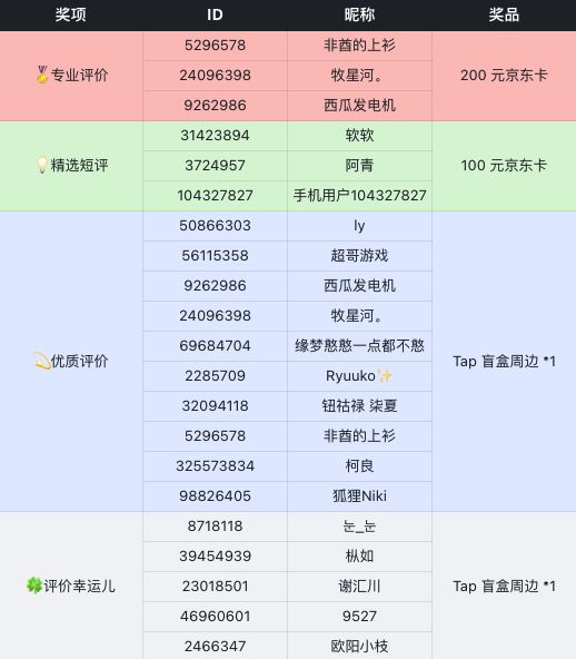评价活动是TapTap官方举办的社区活动,旨在征集高质量的评价内容,与厂商无关。
